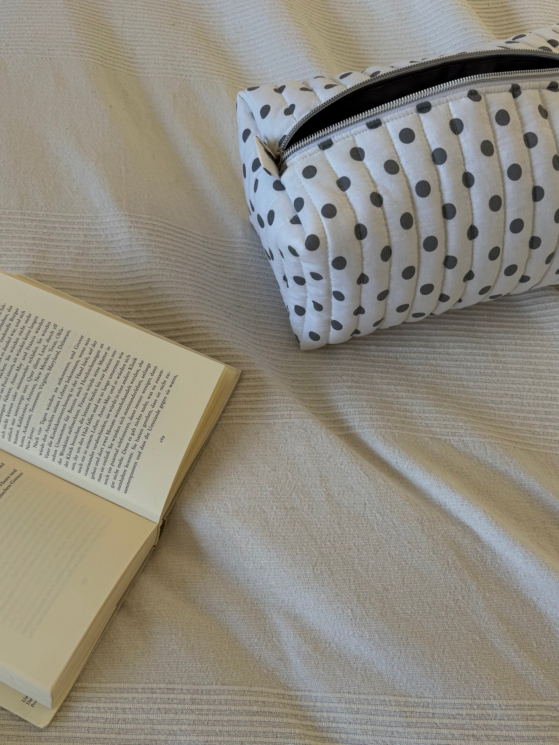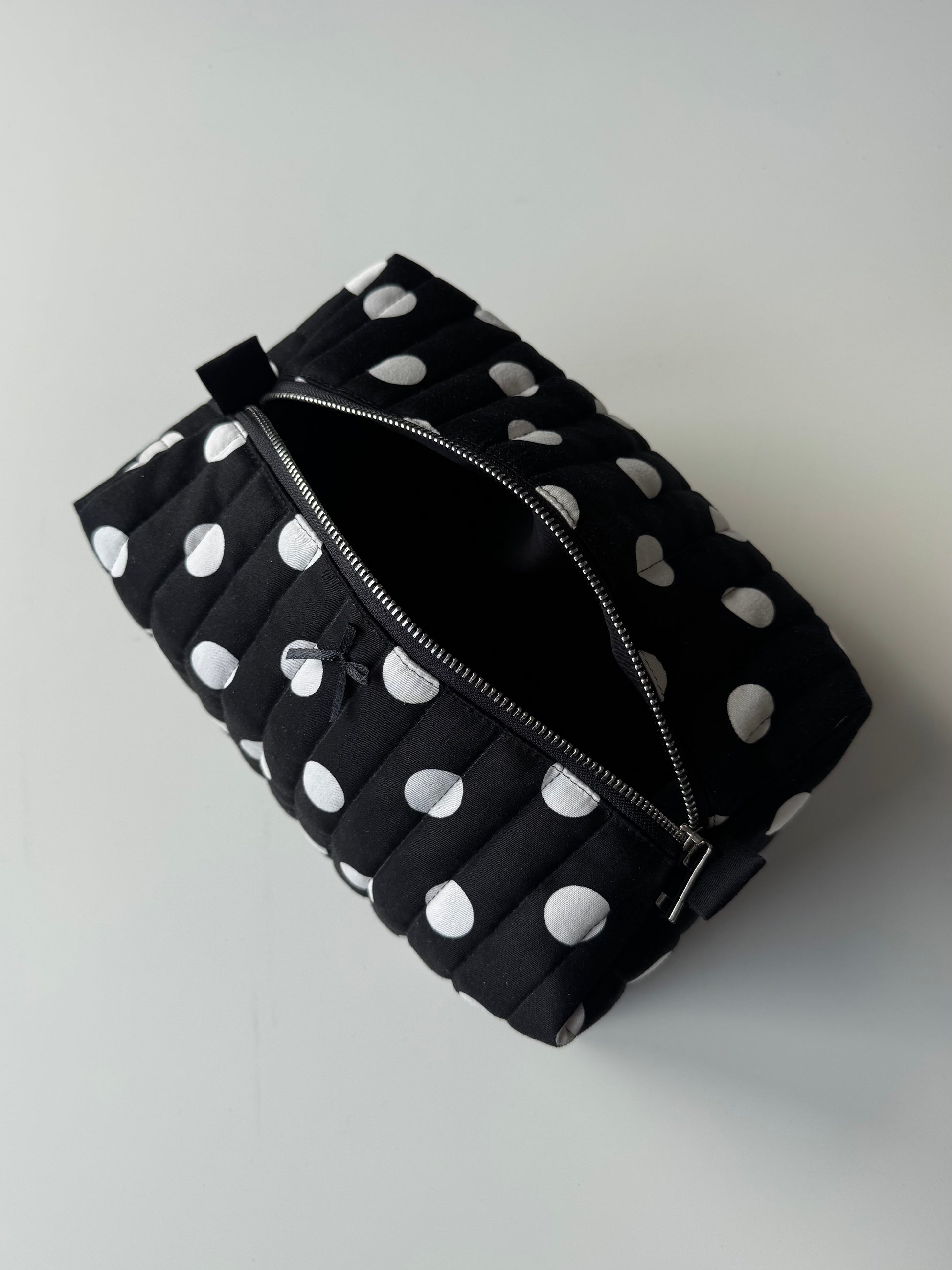 maxi cosmetic bag - Polka Dots Design aus 100% Baumwolle (Oberstoff), wattiert und mit süßer Schleife
